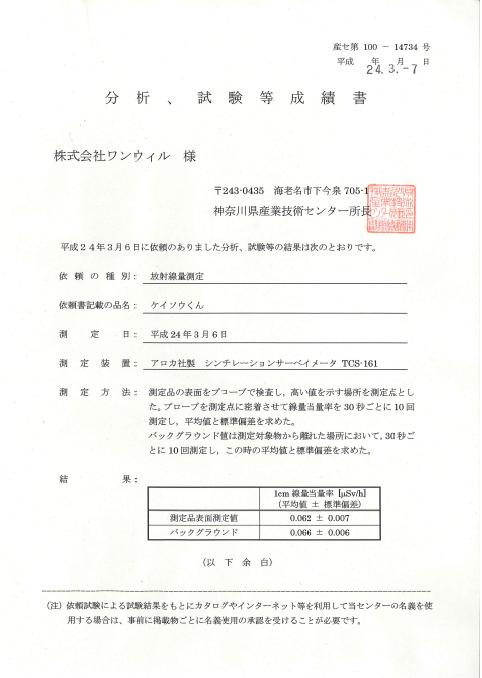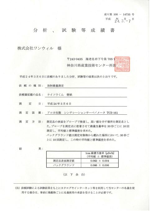 暮らしの中の快適空間を創る 漆喰珪藻土自然素材系塗り壁「ケイソウくんシリーズ」は「放射能試験」を行っています。