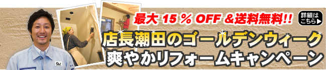 只今 「店長潮田のゴールデンウィーク爽やかリフォームキャンペーン」 を開催中です!!