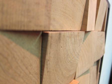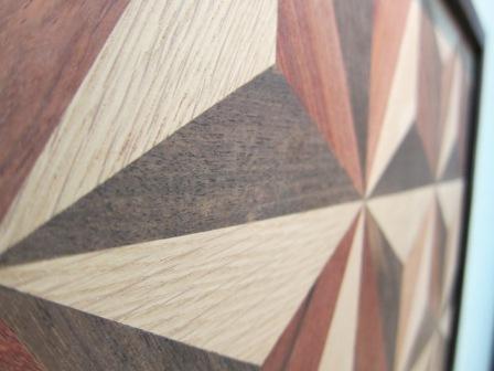 ブロック柄やストライプ柄、菱形柄などのシンプルな組み合わせを、天然木を一つ一つ組み合わせ