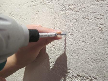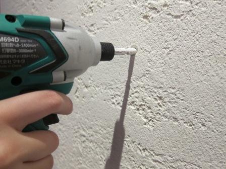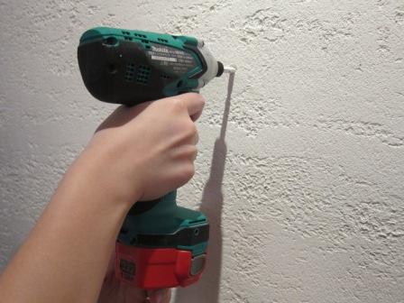 次で使用する「石膏ボード用アンカー」指定の大きさの穴を開けます。