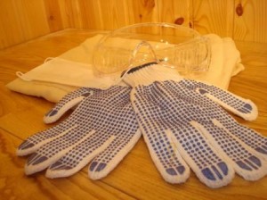 また手袋だけでなく 「ゴーグル」 「マスク」 「エプロン」 等、肌に材料が付着