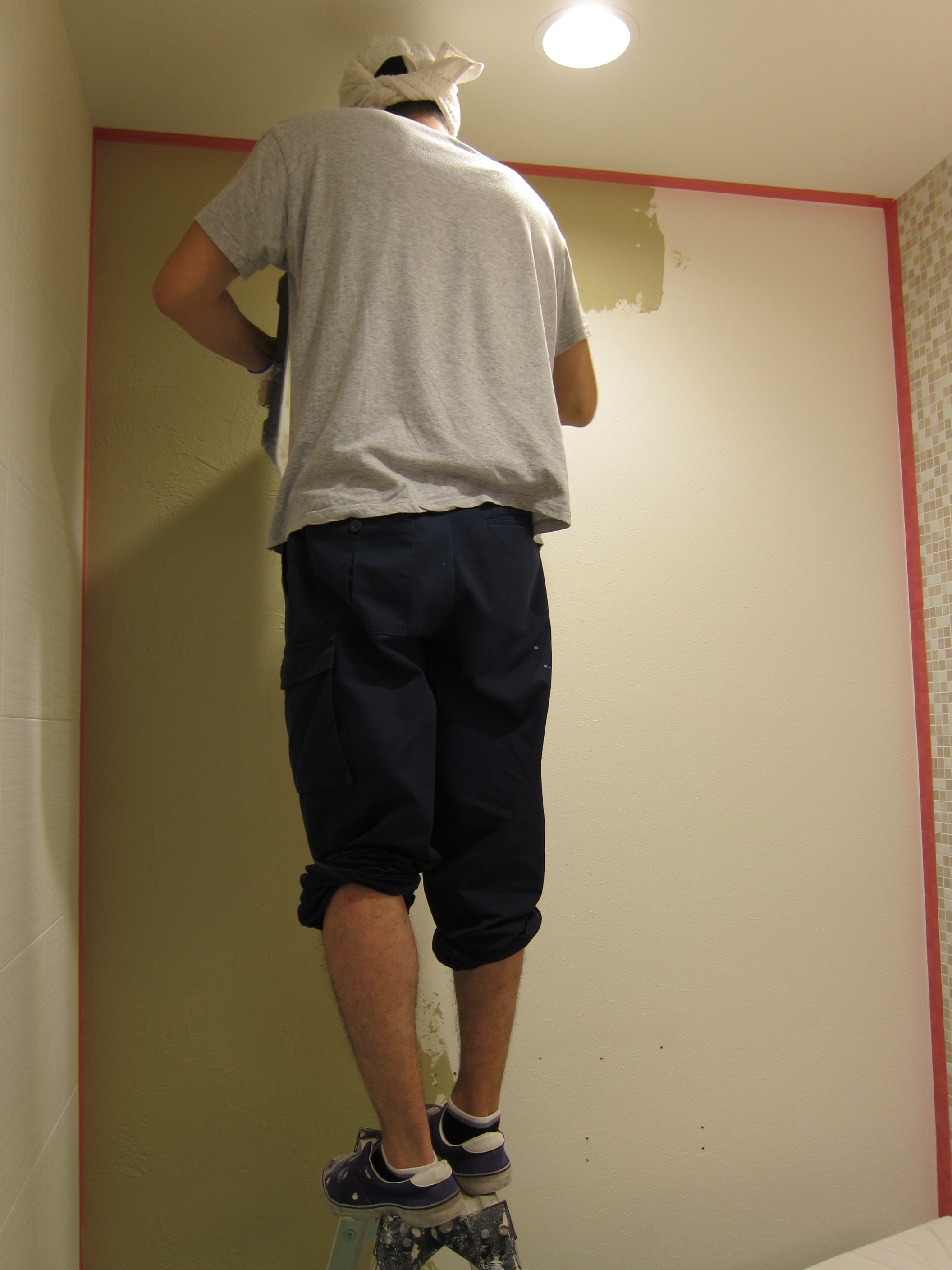 ●壁面左上から「ケイソウくんFINISH ONEグレード塗り壁材」を塗っていきます。