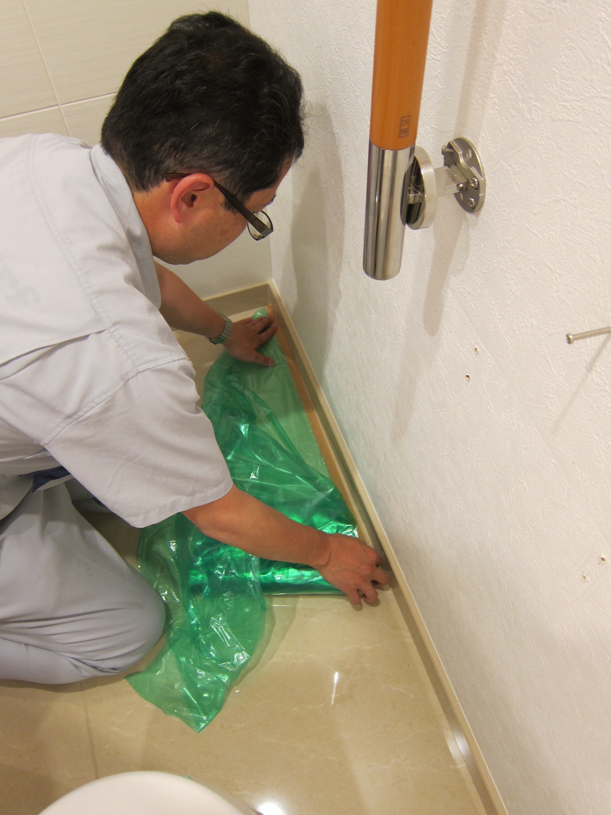 ●ある程度乾燥した状態で「養生」を取り除き、取り外した「機器」を元の場所に戻します。