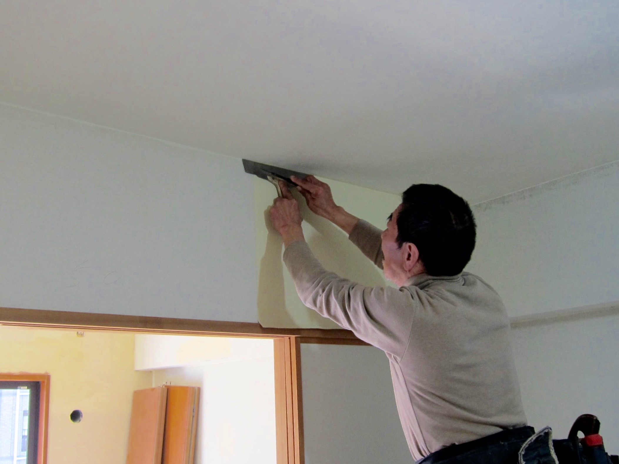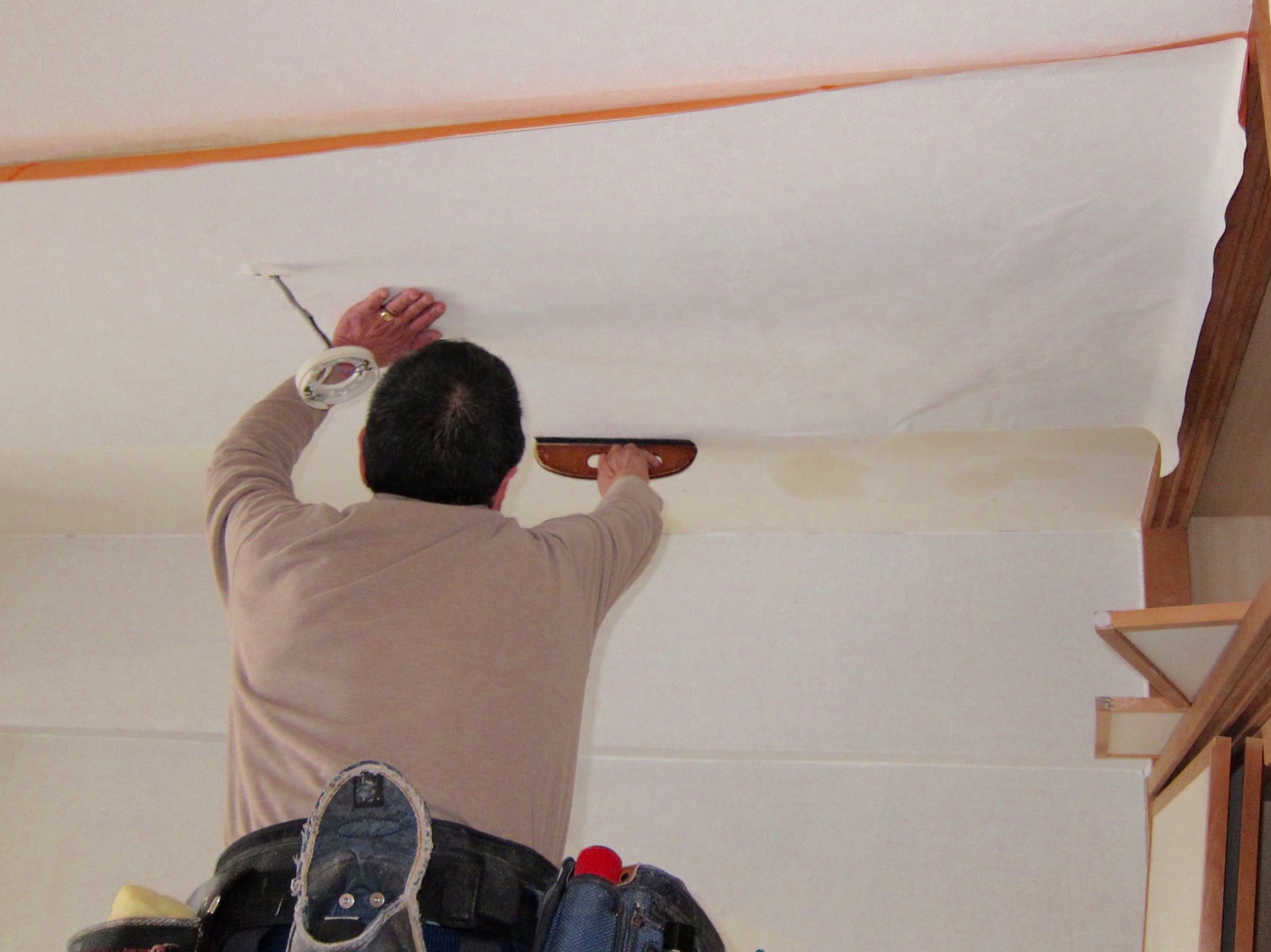 ●この作業動作を繰り返し行い、室内の壁にケイソウくんクロスを貼っていきます。