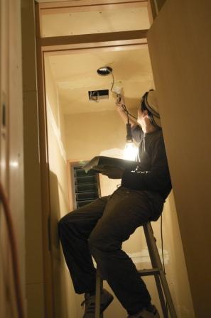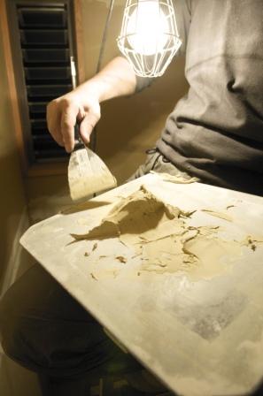 つなぎ目だけでなくボードを止めてある「ビス穴」もパテで丁寧に埋めていらしゃいます。