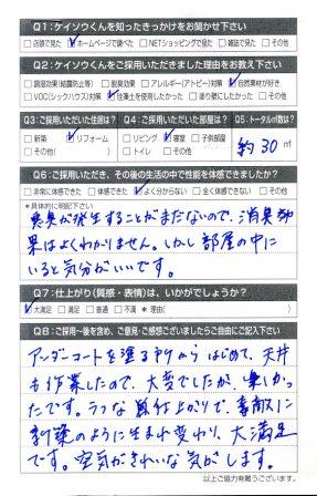 「お客様の声(口コミ):新築のように生まれ変わり 空気がキレイな気がします」漆喰珪藻土塗り壁材ケイソウくんでDIY簡単リフォーム