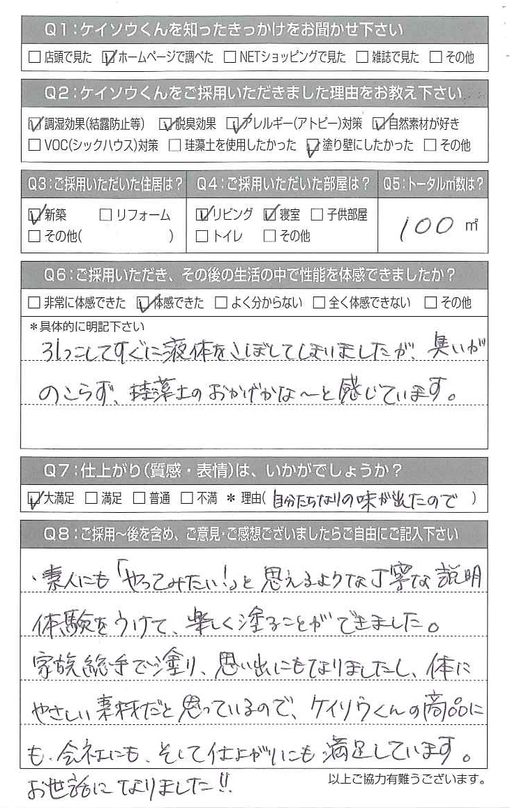 この度は漆喰珪藻土塗り壁材「ケイソウくん」ご採用いただき、また
